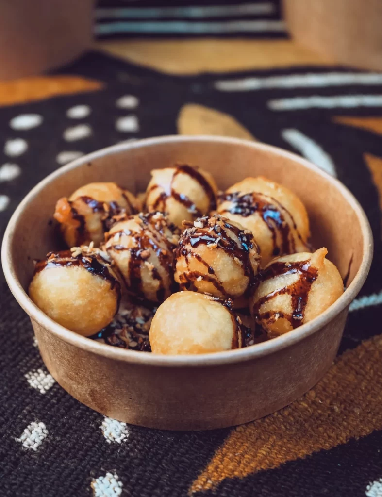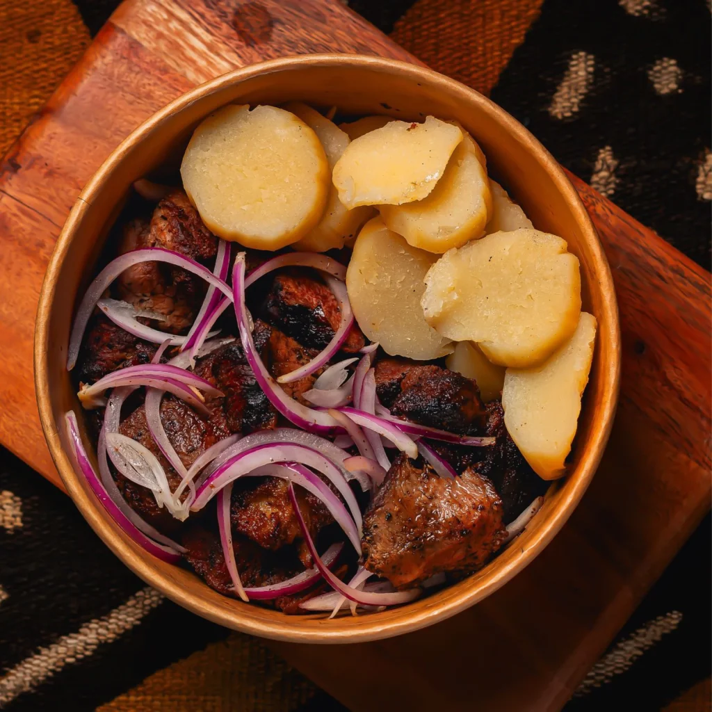 Fried tuna served with attiéké (cassava couscous), fresh onions, and house-made spicy pepper. A street food favorite from Côte d’Ivoire — bold, hearty, and full of flavor.